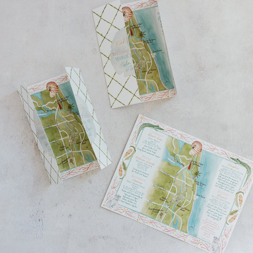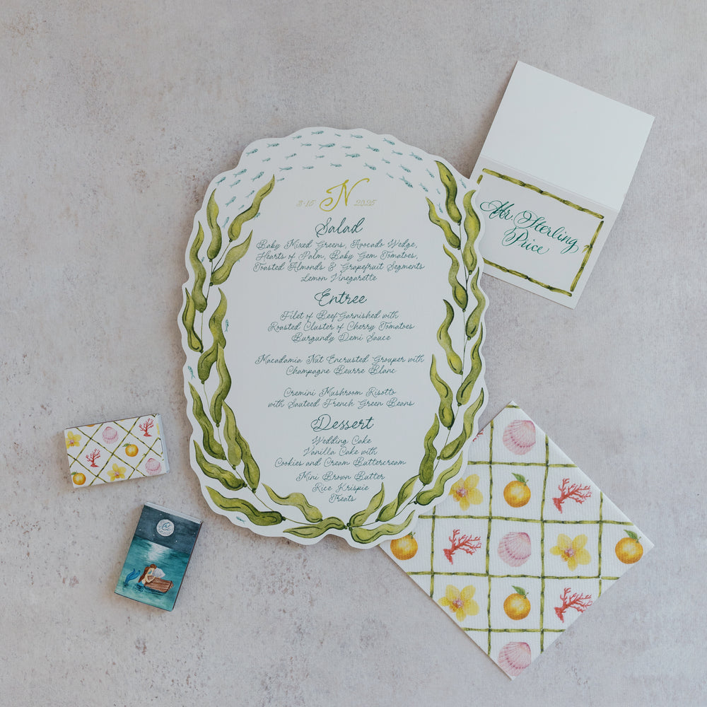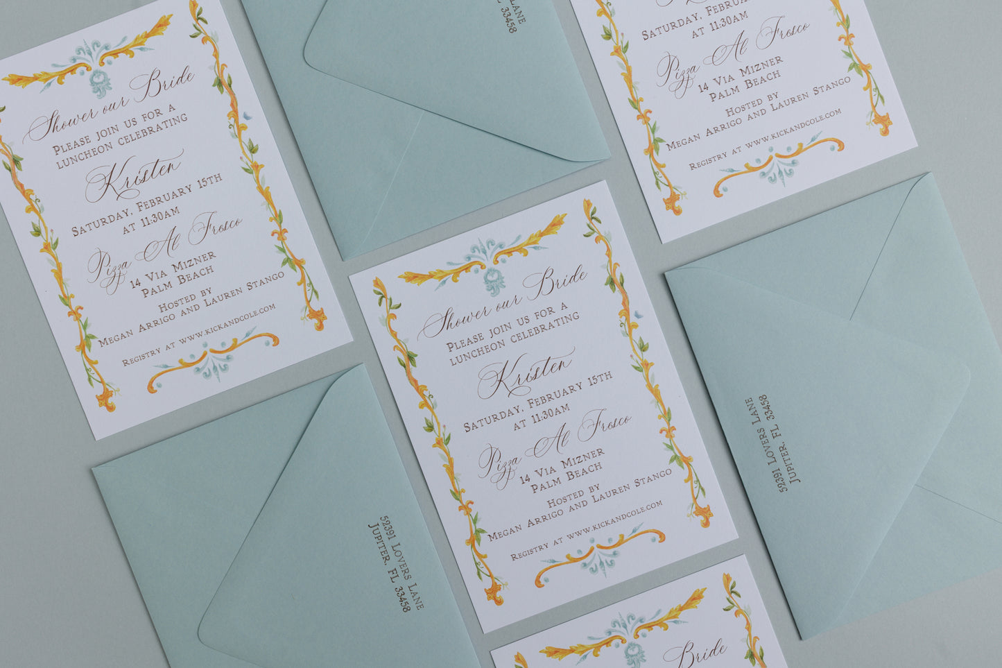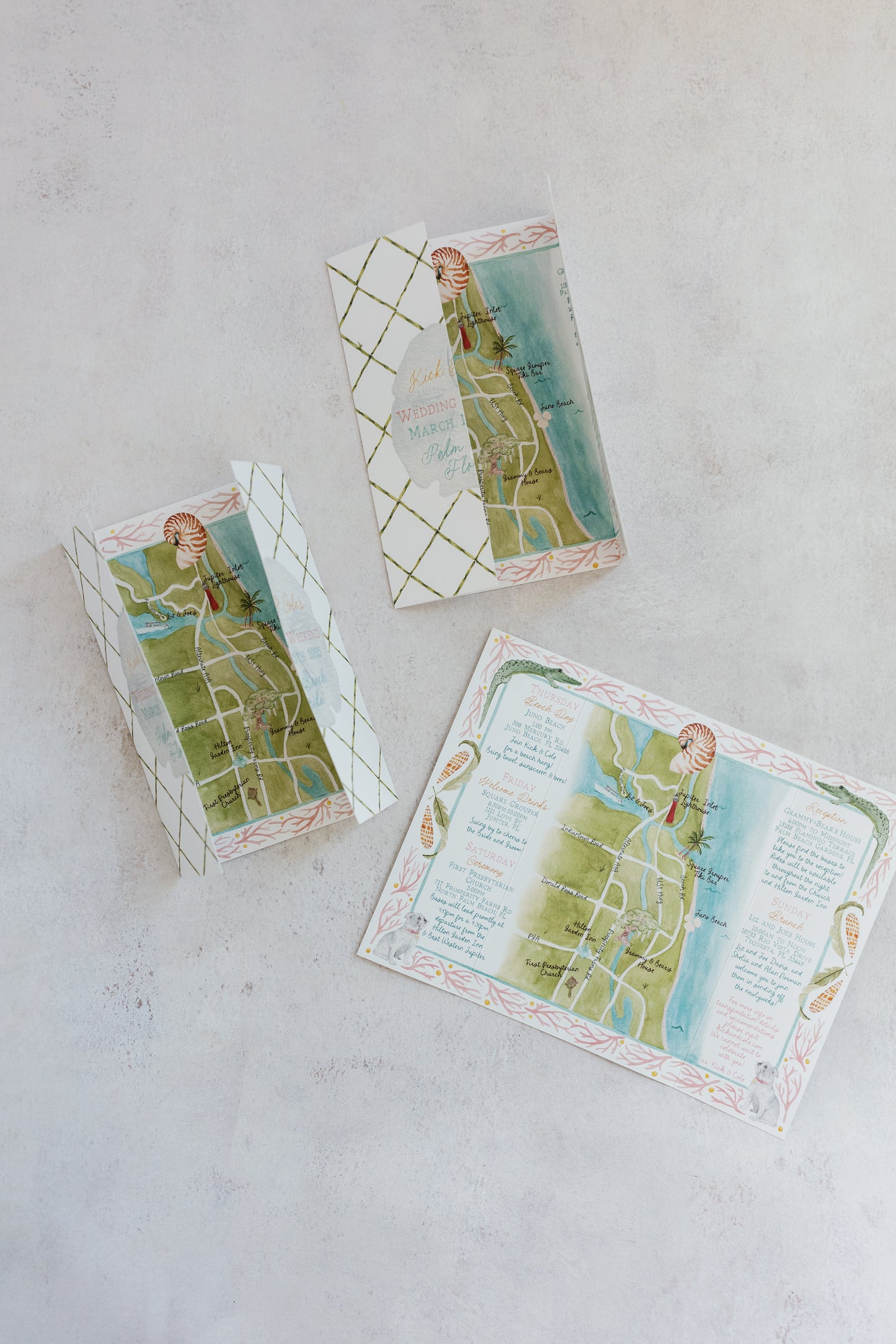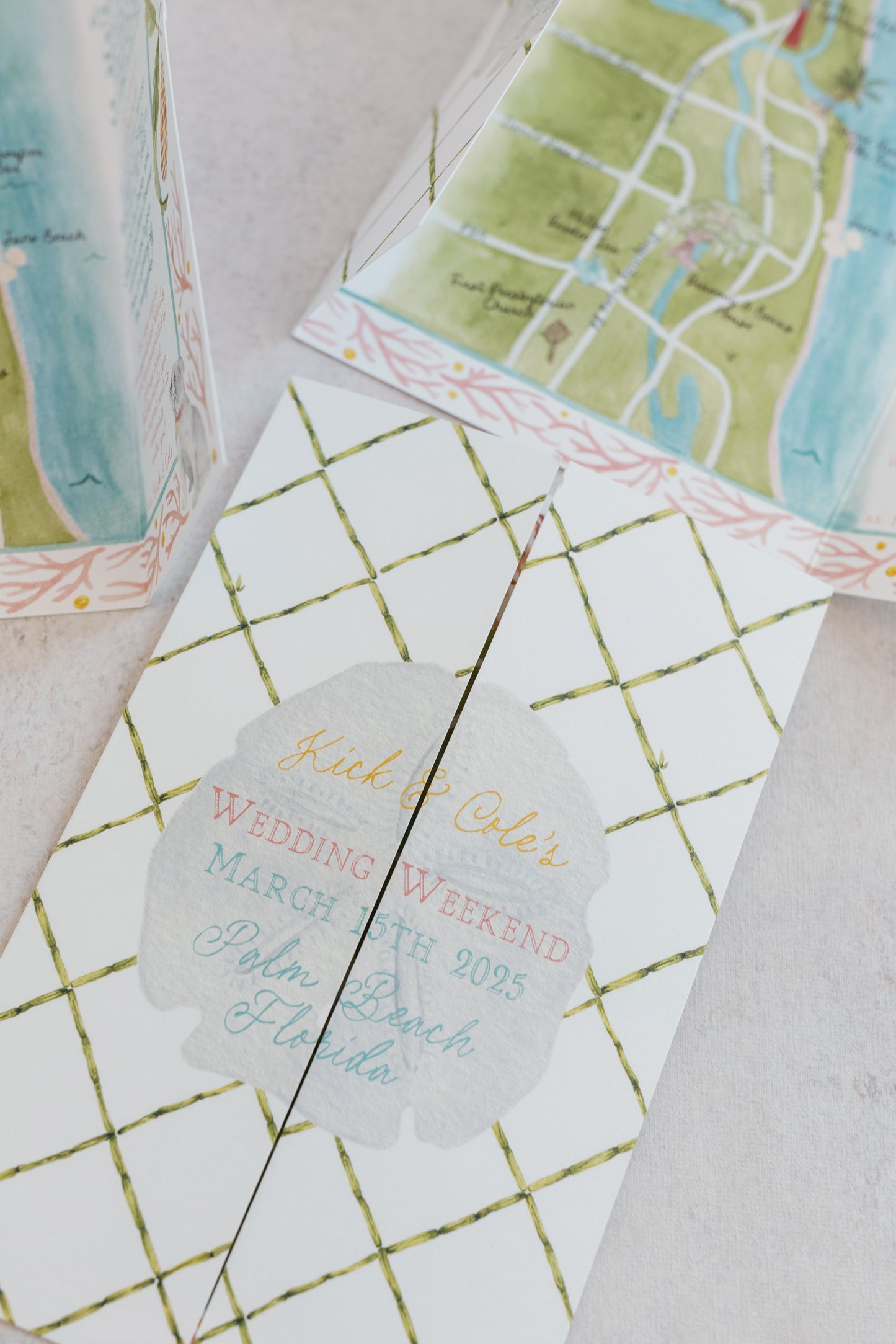 Working on her own wedding paper goods was the biggest project in Kick's planning. Below you'll find images of all the stationery, and day of paper items. Read all about it in Style Me Pretty's article about the wedding!