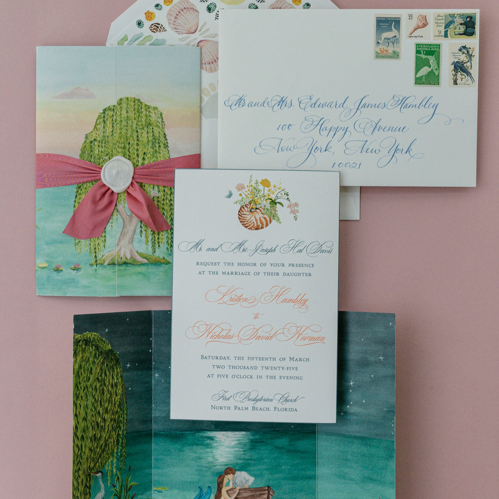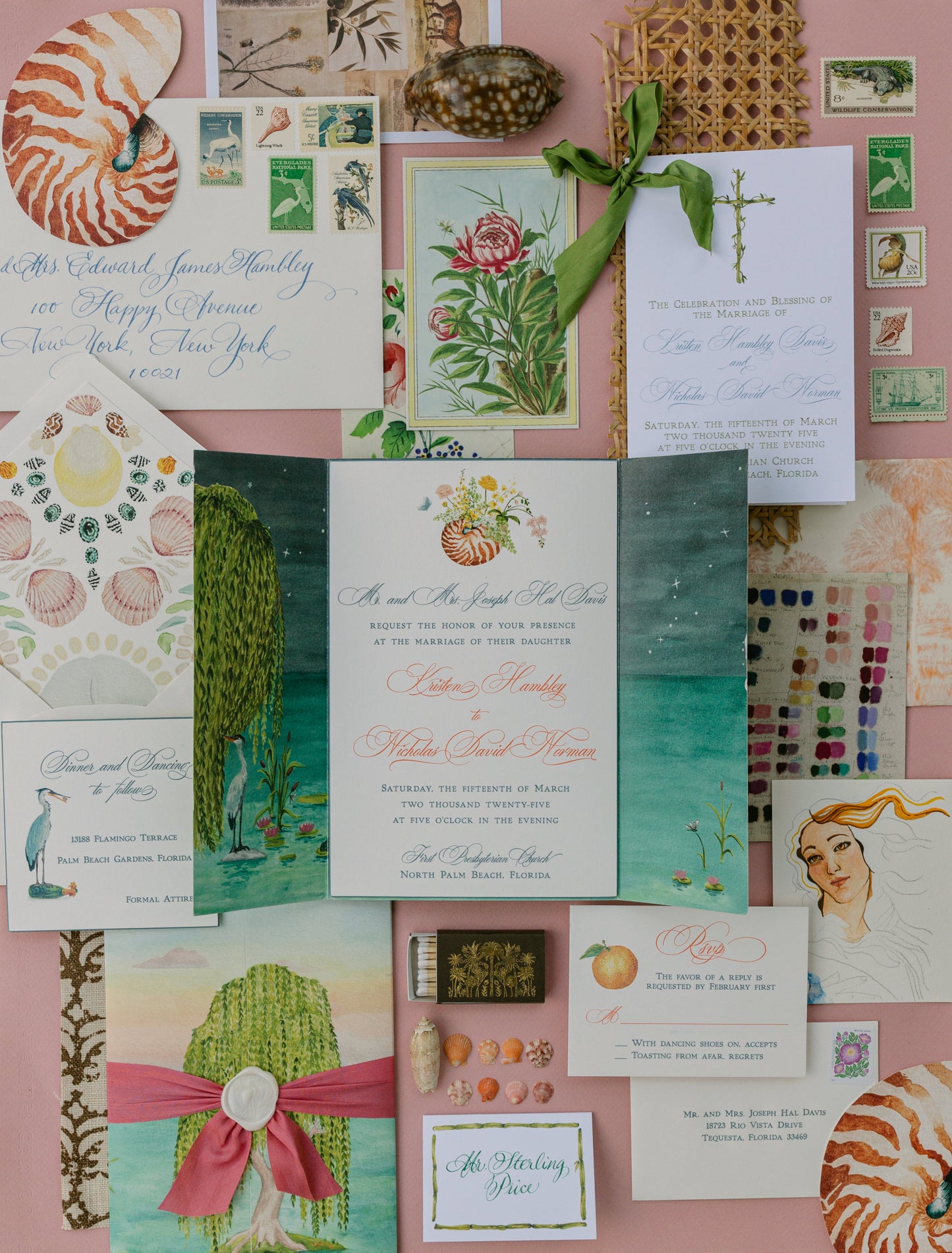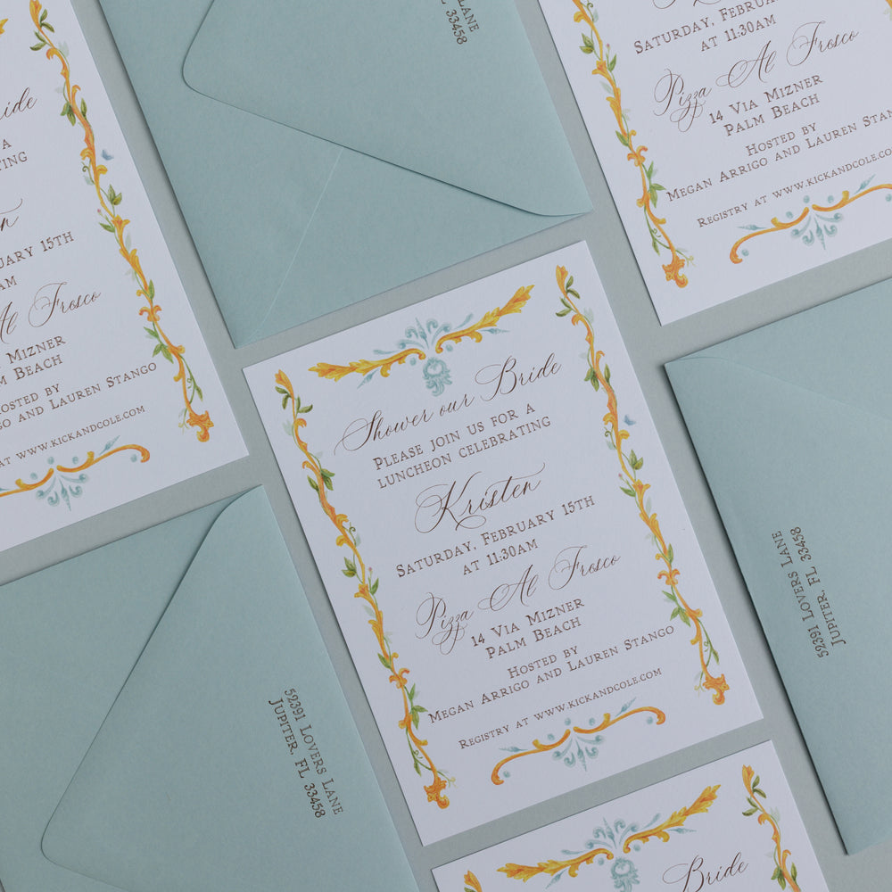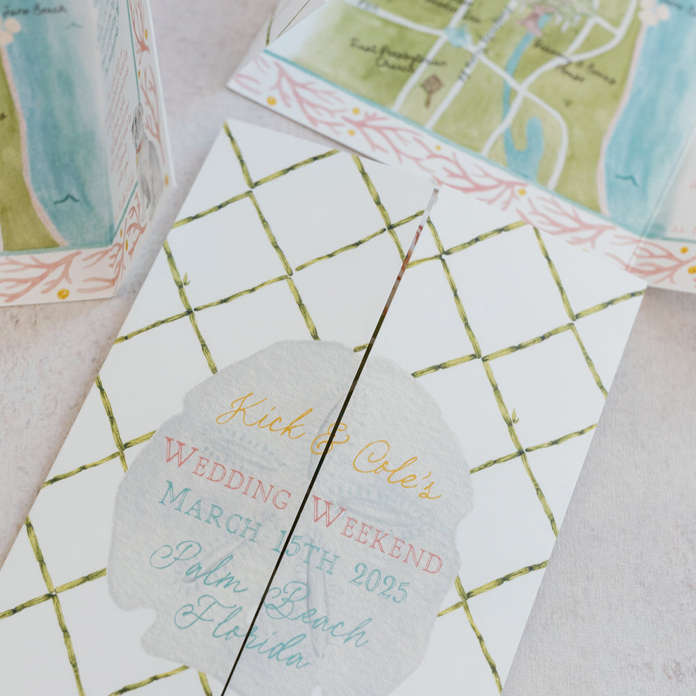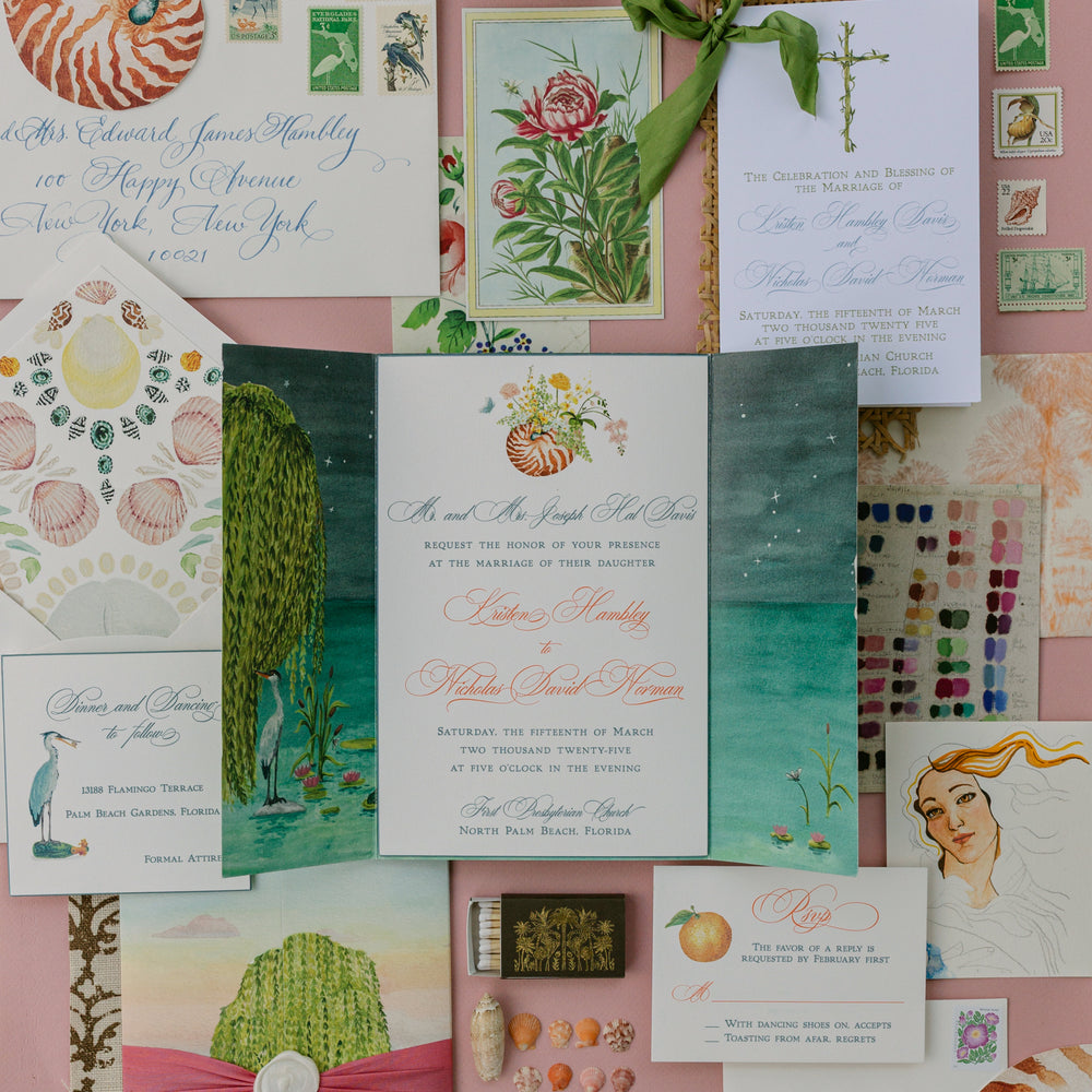 Working on her own wedding paper goods was the biggest project in Kick's planning. Below you'll find images of all the stationery, and day of paper items. Read all about it in Style Me Pretty's article about the wedding!